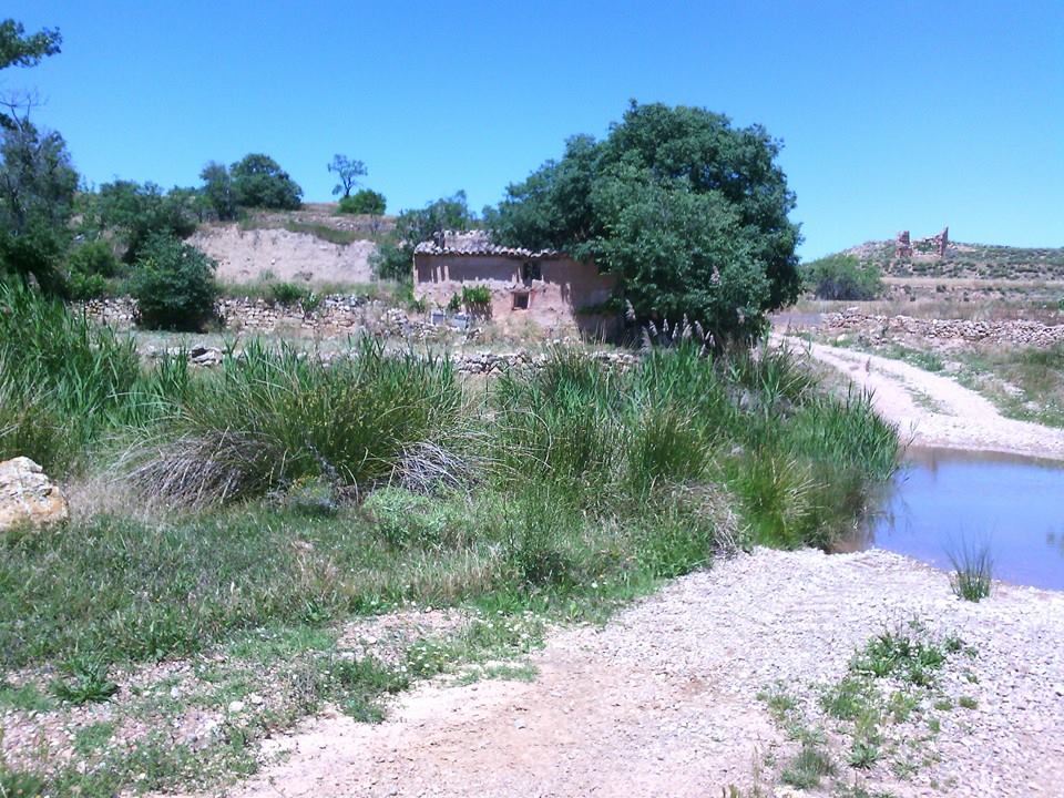 · Km. 2,47 Después de una pronunciada bajada cruzamos el río Marineta y nos encontramos con el Molino de la Carrera o de Plou a nuestra izquierda, subimos la cuesta y al final de esta tenemos un cruce en + del que tomamos el camino de la derecha.