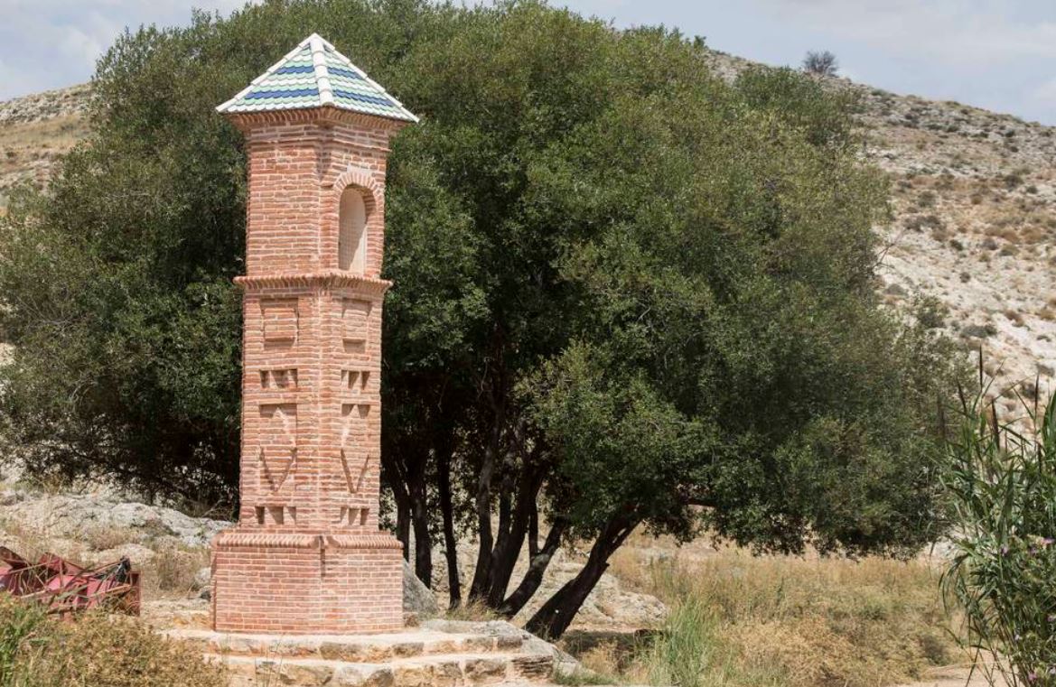 “El de los Santos Mártires, parecido al de San Miguel, derribado durante la Guerra Civil para construir en su lugar una “garita de guardia” en donde hoy tenemos el transformador, se encargaría de proteger el acceso de Muniesa y del camino del Palomar”.